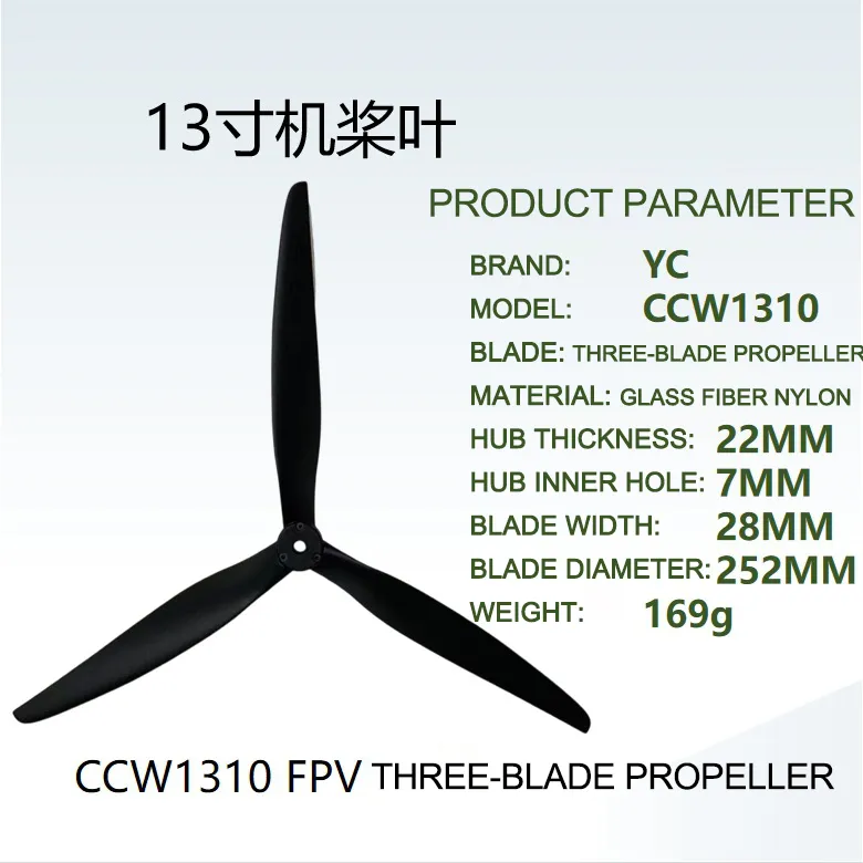 CCW1310: 252mm diameter, 28mm blade width, 22mm hub thickness, 7mm inner hole, 169g (glass fiber nylon)