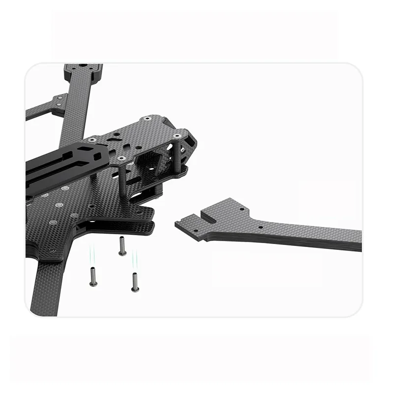 Robust Carbon Fiber Construction: Made from high-grade Carbon Fiber Sheet, the frame combines 7mm thick arms and 3.5mm stiffeners for exceptional durability, resisting crashes during FPV racing.